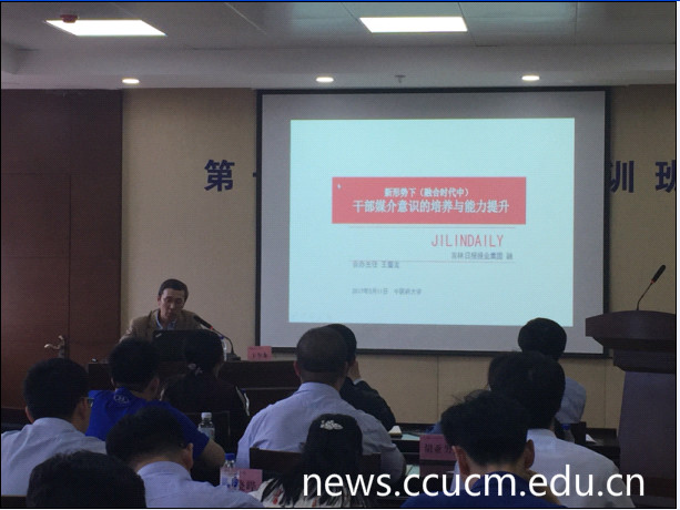 5月11日,学校第一期青年骨干培训班举行第七次专题学习,邀请吉林日报媒体融合办公室主任王奎龙来校为全体学员作了题为《新形势下(融合时代中)干部媒介意识的培养与能力提升》的专题讲座。